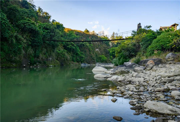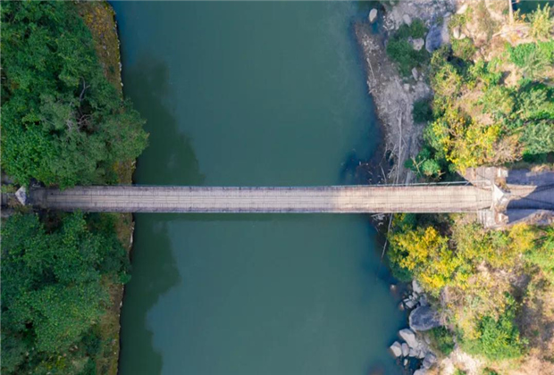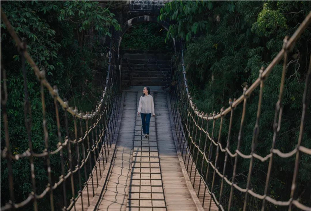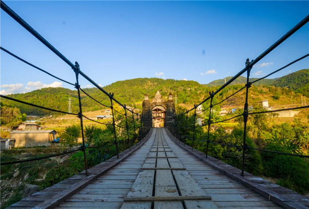 踏上龍江鐵索橋,步履前移,鐵索晃動(dòng),橋身輕擺,顫顫悠悠,腳下的橋板,仿佛背負(fù)著沉重的任務(wù),讓那原始的來自彼岸的腳步聲,帶來無限的遐想。洗耳恭聽,橋下江水潺潺,波濤翻滾,旋渦匍匐,濤聲湍急,讓人浮想聯(lián)翩;停下身來,站在橋上,手扶欄桿,憑欄遠(yuǎn)眺,西看絕壁險(xiǎn)峻,東看田園奇峰,下觀碧浪翻騰。龍江上下,奇異風(fēng)景,盡收眼底;環(huán)顧四周,古道從高黎貢山爬出,將溫馨送至心扉。俯首沉思,橫臥的龍江鐵索橋似乎背負(fù)著希冀,正靜靜地等待。抬頭看向遠(yuǎn)方,希望在延伸,穿越時(shí)空,古道、索橋......