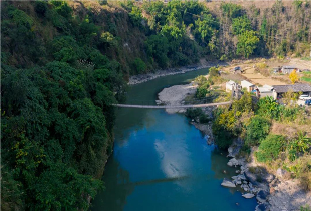 景在龍川江鐵索橋,此橋?yàn)楣糯z綢之路“赴府正道”的必經(jīng)之地,因地勢險(xiǎn)要、景色壯觀而被古人列入“騰沖十二景”之一,名曰“萬里虹山”。