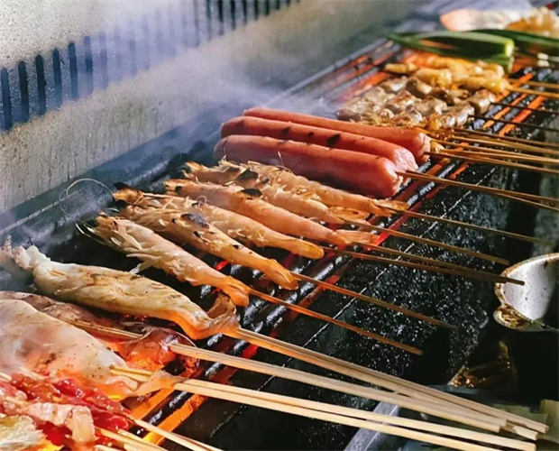一串串滴著油的烤肉在炭爐上被一雙老練的手翻烤刷醬,食客挑選好入座,有說(shuō)有笑,一邊喝酒一邊聊天,似乎只有這樣才能忘卻工作一天的辛勞。