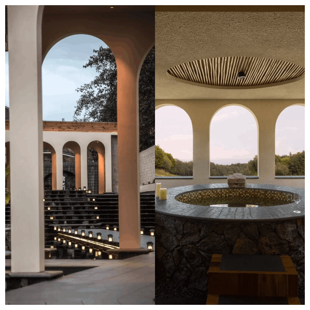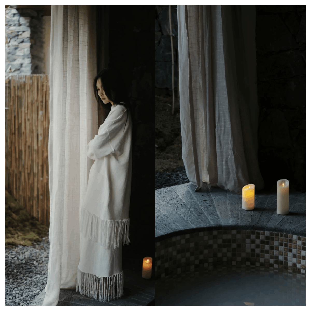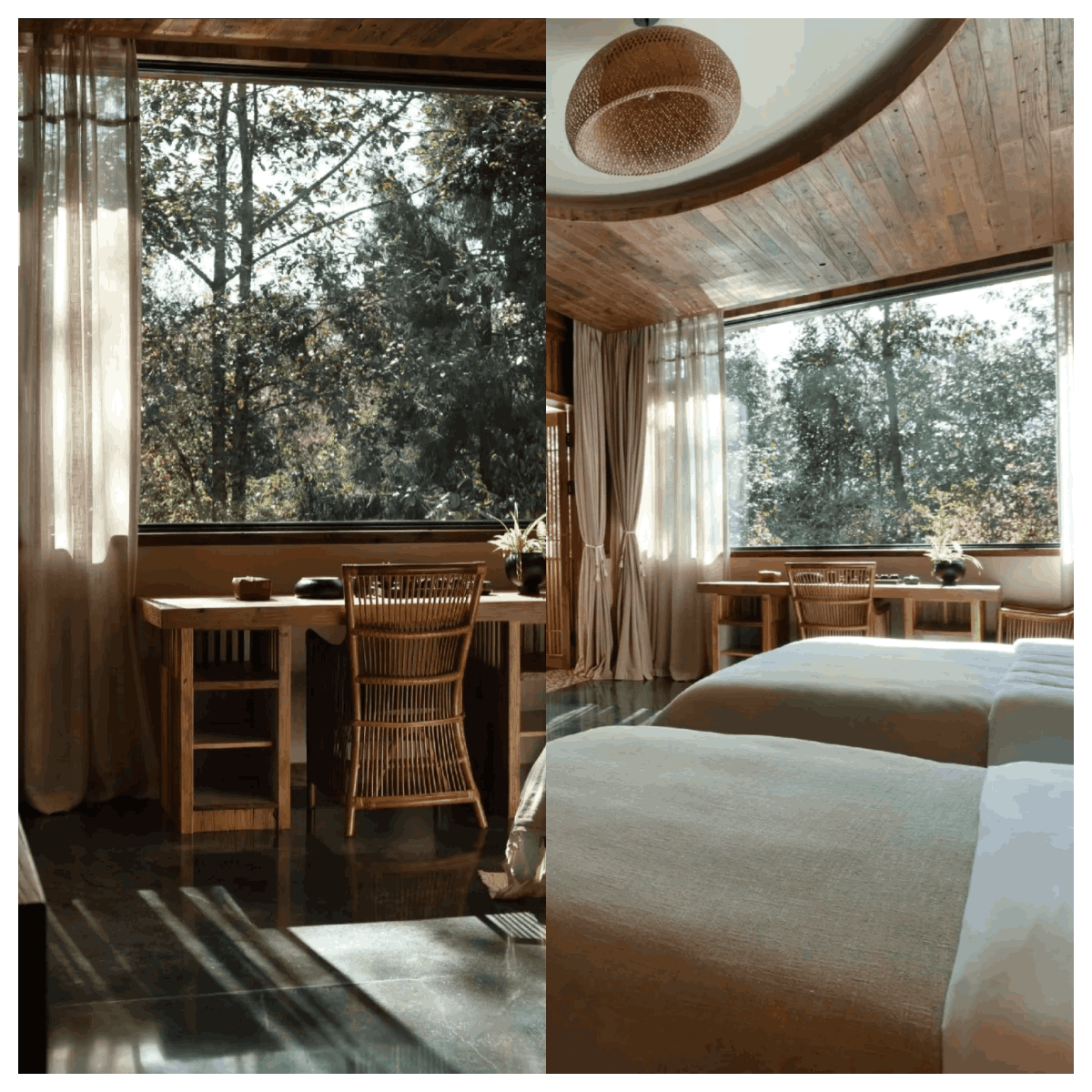 藏于山林秘境中,被茂密植被環(huán)抱,推窗即是滿眼綠意與清新負(fù)氧離子。主打溫泉與森系融合,私湯引入天然溫泉水,泡湯時(shí)可聽蟲鳴鳥叫,沉浸式擁抱自然。