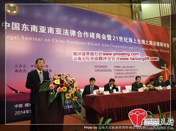 為加強交流互鑒、增進共識,推動國際關系、區域關系中的重要作用, 積極主動配合國家發展戰略。12月21至22日,由中國法學會主辦,云南省法學會、云南大學和北京大成(昆明)律師事務所共同承辦“中國東南亞南亞法律合作磋商會暨21世紀海上絲綢之路法律研討會”在保山市騰沖縣召開。中國法學會副會長張鳴起,云南省委政法委常務副書記、省法學會會長喬漢榮,柬埔寨駐華使館公使銜參贊努齊望和110余名中外法學法律界的專家學者出席,中外嘉賓并致辭。開幕式由中國法學會對外聯絡部主任谷昭民主持。