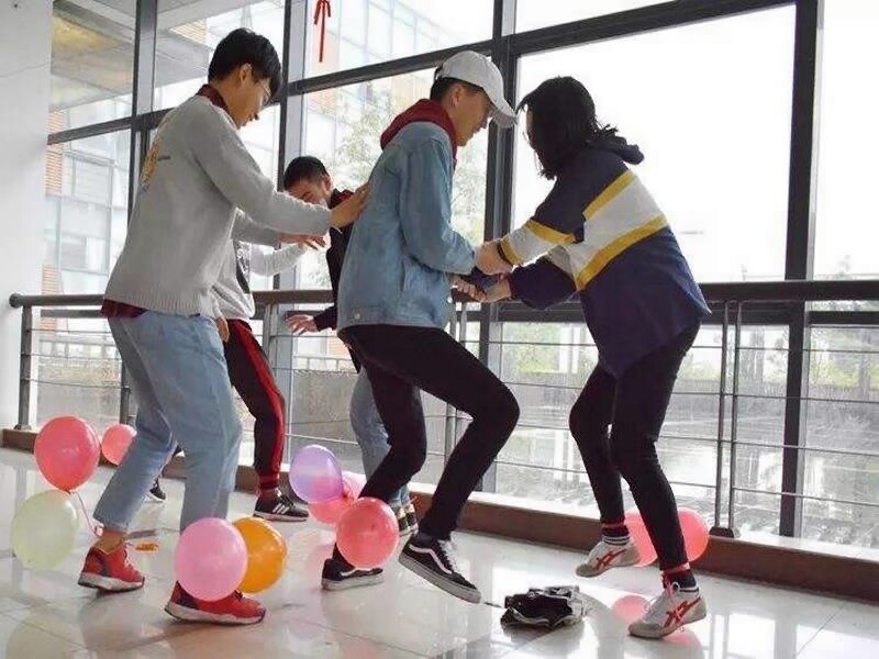 2、兩人三足踩氣球-這是一種比較激烈且又帶有配合的踩氣球游戲,游戲以兩人為一組,將兩人相鄰的腳綁到一起,而且將4個(gè)氣球綁到兩腳上,然后進(jìn)行混戰(zhàn),哪個(gè)隊(duì)伍的氣球最先被踩完,則該隊(duì)被淘汰。