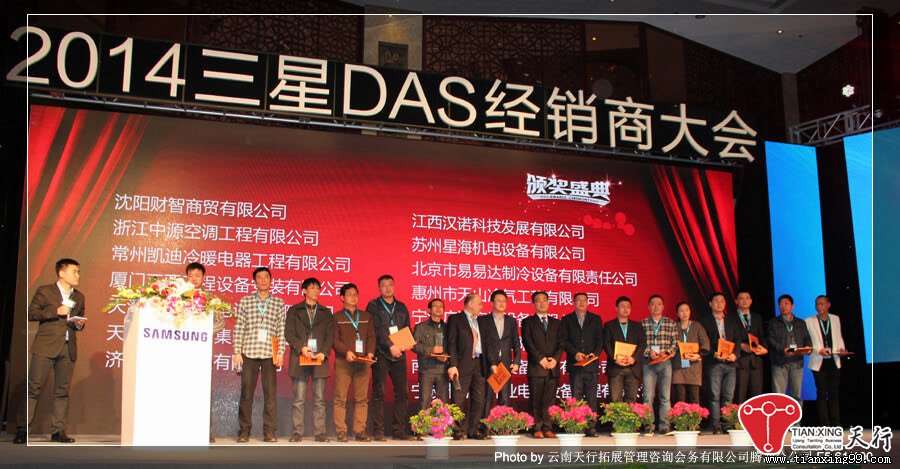 2014年2月17日,三星中央空調(diào)在云南騰沖舉行2014三星DAS經(jīng)銷商大會(huì),來自全國(guó)各地的100多位經(jīng)銷商以及三星中央空調(diào)韓國(guó)本社、中國(guó)總部的相關(guān)領(lǐng)導(dǎo)出席會(huì)議。會(huì)議透露,在已經(jīng)過去的2013年,三星中央空調(diào)在中國(guó)市場(chǎng)實(shí)現(xiàn)銷售額40%的增長(zhǎng),樹立了諸如上海融真商務(wù)廣場(chǎng)、安徽置地廣栢銳中心、天津天驥·智谷、濟(jì)南綠地普利中心等樣板工程,尤為出色的是三星在家裝流通領(lǐng)域的增長(zhǎng)和進(jìn)步。