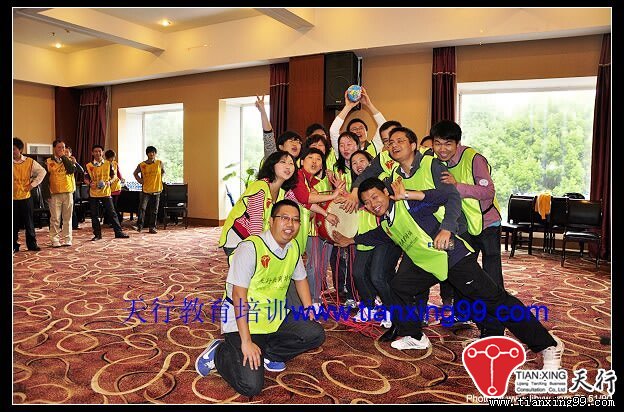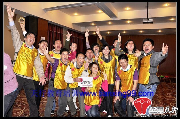 正式開始之前還是一樣的做熱身運動。熱身運動每個培訓師做的都差不多.之后就是分組了,一般如果客戶不特別要求要游戲分組的話分組一般只會采取簡單一二三的方式進行分組,在這次活動中我們采用了“拼團游戲”的方式進行分組,用客戶公司的LOGO進行拼圖分組,以下是每隊“拼團游戲”團隊合影,燦爛的笑容洋溢在每個人的臉上............