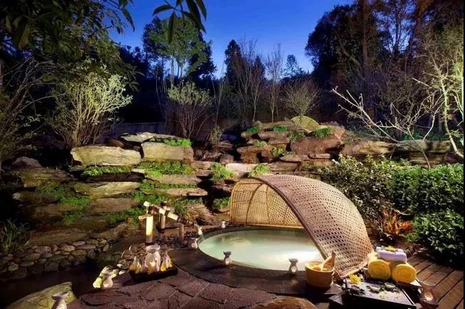 在五星級悅椿度假村里,離鎮里15公里,度假村坐落在幽靜山谷中,設施相對較好。如果住在悅椿度假村,更可以享受私密性更好的室內溫泉。
