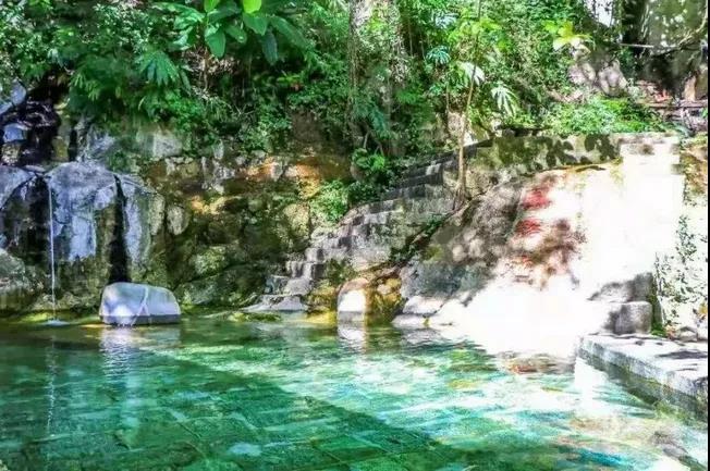 洞山溫泉的水清冽干凈,鑲嵌在群山之中,風光旖旎,溫泉泡池星羅棋布,像一塊塊形狀不一的明鏡,像是山間走來的溫婉少女