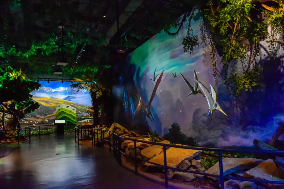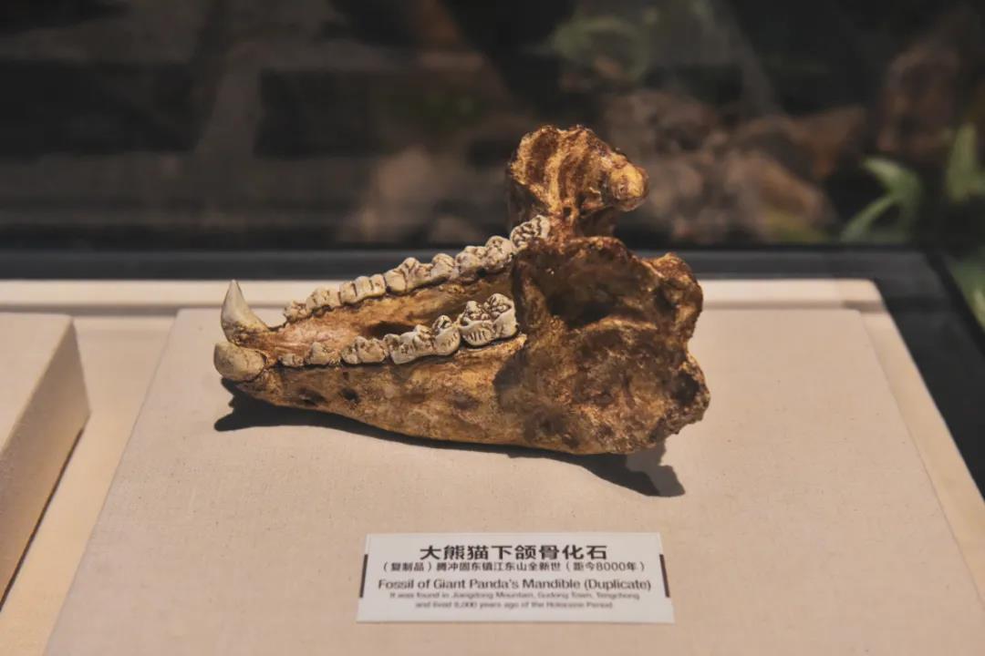 到第三、第四紀冰川時期,山地動物的垂直遷移可以短時期內完成,動植物“避難所”形成。在這個部分,展出的實物主要有古生物化石、巖石標本恐龍時代高黎貢山的地質地貌及在江東山出土的最晚大熊貓化石等場景和實物。