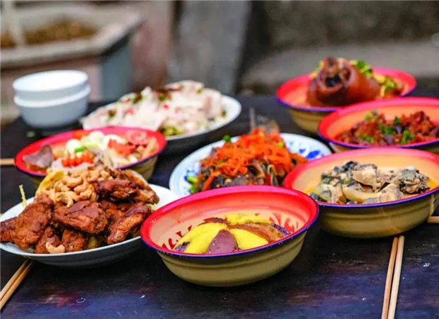 在騰沖宴席中,影響大者,首推“八大碗”。“八大碗”在騰沖地方史志資料中稱為“八簋”。“簋”為古代食具,通體圓形,肚大,口底略收。由此可知“八大碗”歷史久遠,聲名赫赫。騰沖“八大碗”食材多樣,內容豐富。有葷有素,有甜有咸,有熱有冷,有香有脆,有湯有羹。做工精細,搭配講究,可調眾口,可飽眾腹,實為騰沖飲食的代表作。