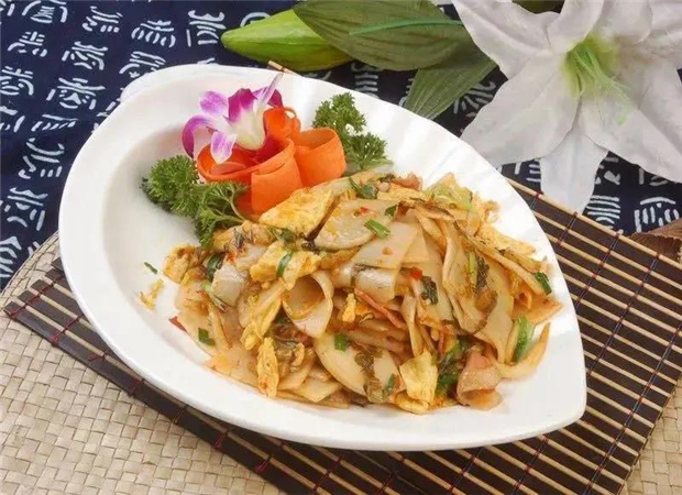 雖是落難皇帝,騰人亦以禮相待。當時永歷帝饑腸轆轆,急需進食,廚師來不及將餌卷切成絲,只三刀兩剁,加佐料炒熟供永歷帝進膳。這位落難皇帝本系深宮弱質,又經長途奔波,今得進此食,比山珍海味還可口,便問:“此食何名?如此美味,真乃救吾駕也。”主人語塞之余,突然醒悟,奏曰:“此食原本無名,今日得皇上以救駕稱之,幸甚!”