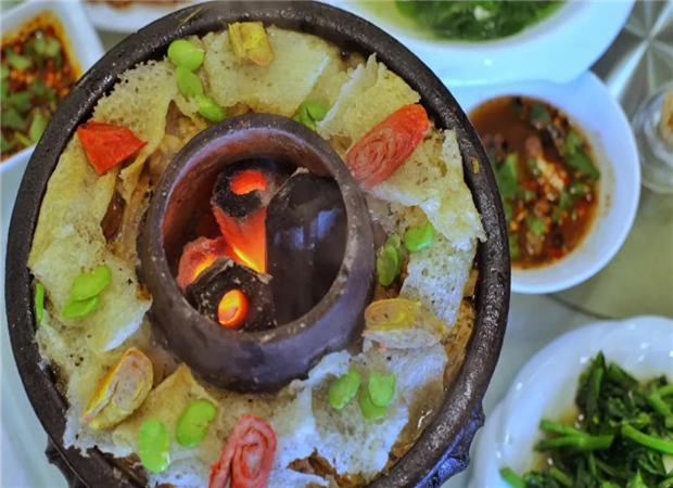 土鍋子 類似于火鍋講究慢火慢煮因而菜味鮮甜醇和土鍋子,騰沖人舌尖上的火山熱海