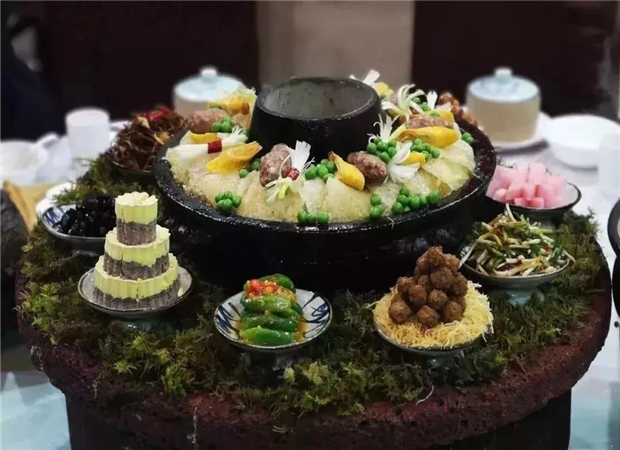 騰沖的土鍋?zhàn)有嗡乞v沖的火山和熱海。土鍋里面燒火碳,稱“火山”,周圍煮肉菜,為“熱海”。